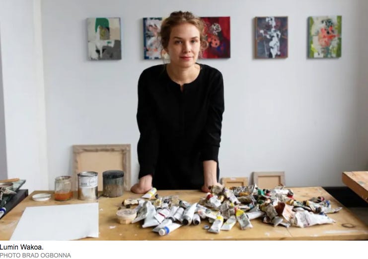 This summer, the workshop she convened was a gift of a healing circle, after I experienced a pregnancy loss in June. I want to share the poem (spacing + enjambment) a little funky in Substack) I wrote in community there. Lumin Wakoa’s painting “Untitled (bones)” was the portal I used to write into my grief. Thank you to Alexi for bringing this painting to our altar to honor your friend.